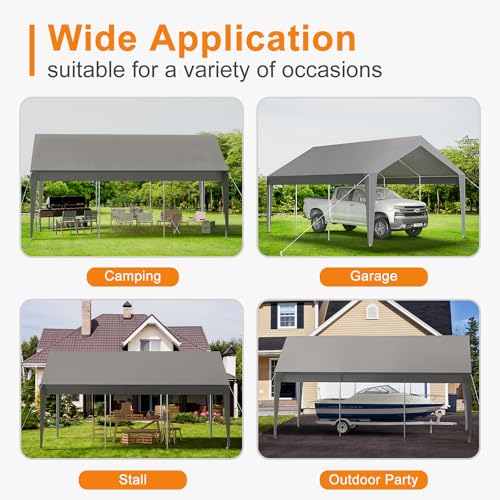 Whether you need a portable carport for your boat, an RV carport, a space for social gatherings, or extra commercial room, our heavy-duty carport is the ideal solution. Its generous space and robust construction make it suitable for various outdoor activities and storage requirements, functioning effectively as a reliable 10x20 heavy-duty carport canopy.