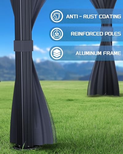 [Privacy and Comfort] Includes gray curtains and mesh netting for light blocking, mosquito protection, and rain shielding; polyester fabric ensures easy-to-clean and no fading for a cozy outdoor experience.A good choice for creating a shaded retreat in your backyard gazebo