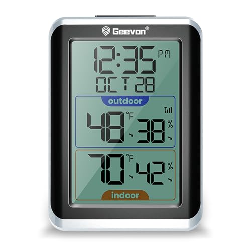 ?200FT/60M Remote Range? Geevon inside outside thermometer wireless with strong signal penetration temperature/humidity sensors,capable of connecting up to 3 channels wireless sensor up to 60m/200ft for multiple locations in an open area.