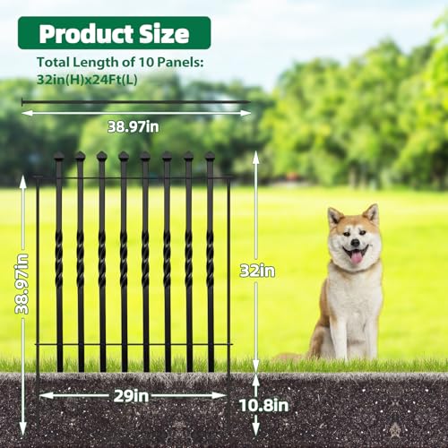 Sturdy Structure - This garden fence is crafted from tubing that is 10 times thicker than wire fencing, resisting bending and strong winds. It also lasts significantly longer than flimsy alternatives, offering exceptional durability. Each panel measures 32"H × 29"W, with a total of 10 panels spanning 24Ft in length.