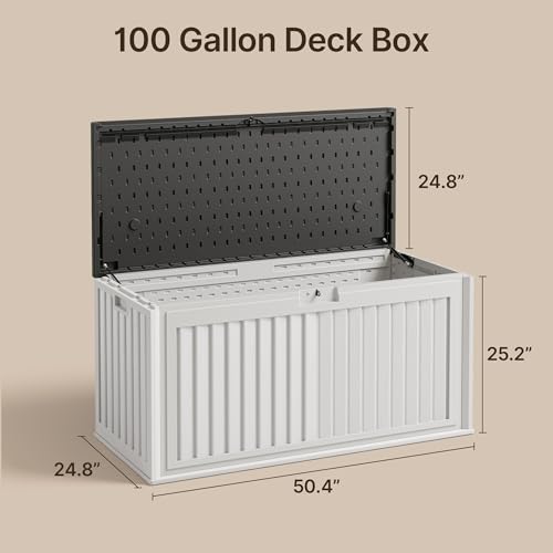 Large Storage Capacity: This 100-gallon deck box provides ample space to store patio cushions, gardening tools, pool supplies, and more, keeping your outdoor area neat and organized. Perfect for home, backyard, or poolside use