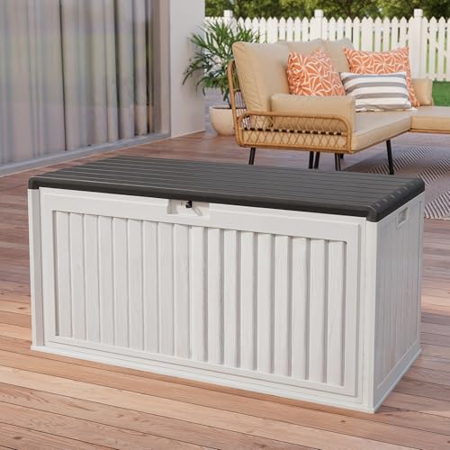 Durable and Weather-Resistant: Made of high-quality resin, this outdoor deck box is waterproof, UV-resistant, and rust-resistant, ensuring long-lasting durability even in harsh weather conditions, and the resin surface is easy to clean
