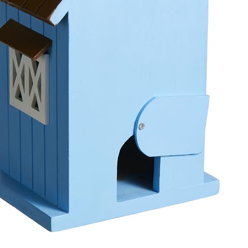 NATURAL and HANDMADE - It is constructed of durable solid wood in a vibrant blue and brown color scheme, with a charming brown roof and round windows that add whimsy and warmth to your space. It will make your garden, patio, backyard, or any other outdoor area stand out