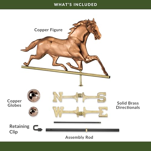 EASY INSTALLATION: Includes weathervane figure, all-weather assembly rod, 18"L directionals, and 2 globes. A 401AL Roof Mount is recommended (sold separately).