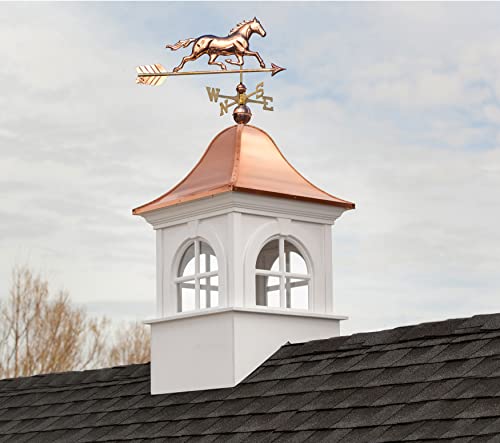 DIMENSIONS – Measures 30"Sq x 50"H. Square size measured at roofline. Fits up to a 10/12 pitch roof (most roofs). When calculating the size of your cupola, use our steadfast builder's rule of thumb: 1.5 inches of cupola width for every foot of unbroken roofline. See photo for more information.