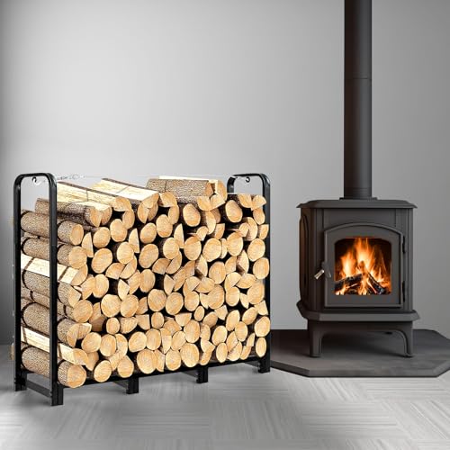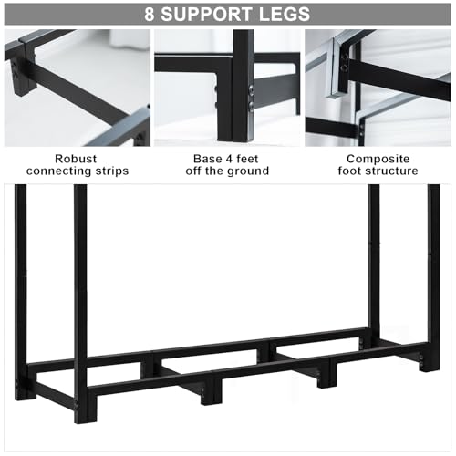 Large Capacity & Adjustable Length - The fireplace log stacker stand measures 48.22 "W×12.01 "D×45.86 "H. It is designed with 8 adjustable support points and can hold up to 551lbs of wood. It can also be adjusted in length for use on patios, under eaves, indoor and outdoor fire pits, etc