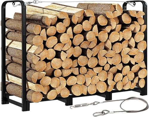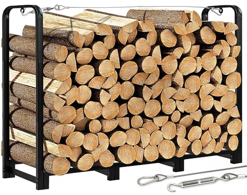 Safe & Firm - This firewood rack stacker has 8 sturdy legs and comes with a pack of plastic inserts to slow down the wear and tear on the metal legs. In addition, there are 2 round locking loops on either side of the top of the rack, which can be locked in place with a rope that can be threaded through the loops to prevent the rack from tipping over when loaded with heavy firewood