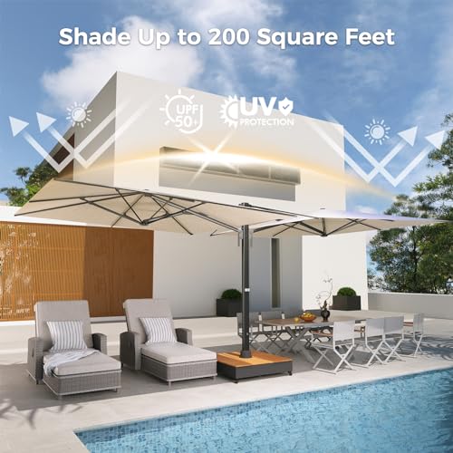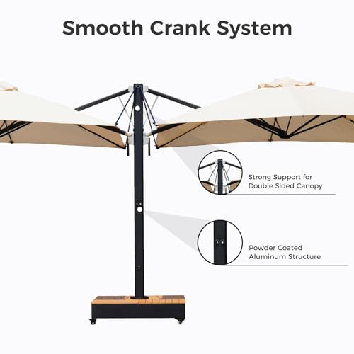 Premium Canopy: High-quality beige 280 g acrylic fabric with UPF50+ anti-UV coating provides 5-year fade-resistant and water-repellant properties. This 10x10 FT double sided patio umbrella provides wide coverage of approximately 200 square feet from the sun which is ideal for your family and customers at the backyard, pool or shop
