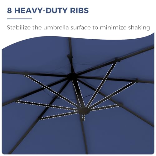 ELEGANT CURVED POLE DESIGN: This large outdoor umbrellas with unique design opens and closes with an crank. The heavy-duty polyester canopy is made to stand up for seasons against water and UV rays. The reinforced pole is powder-coated aluminum for enhanced rust resistance. Enjoy unparalleled stability with our premium cantilever umbrella, boasting 8 heavy-duty ribs