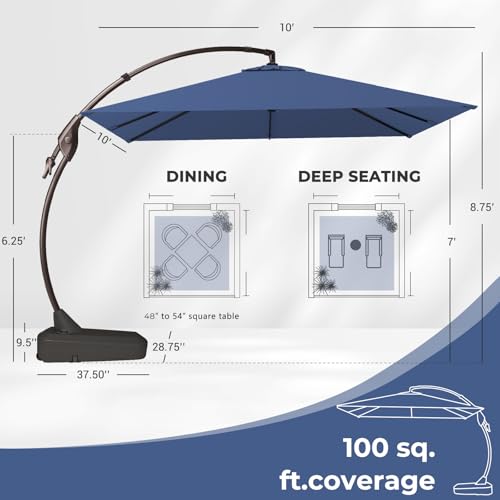 COVER A LARGE AREA: This cantilever umbrella from our Napoli collection provides 100 square feet of relaxing cooling shade. Stay in the shade with our clever auto-lock system that allows you to reposition the tilt of the umbrella exactly where needed as the sun move the day