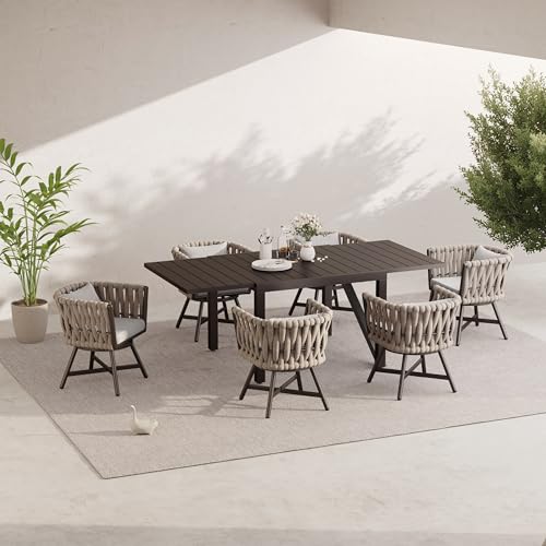 MIXED MATCH & VERSATILE USE: This patio dining chair set features a minimalism style in an easy gray color and open-weave jumbo rope that will add a stylish and modern touch to your outdoor space. This table chair set is perfect for enjoying your outdoor oasis in comfort and style