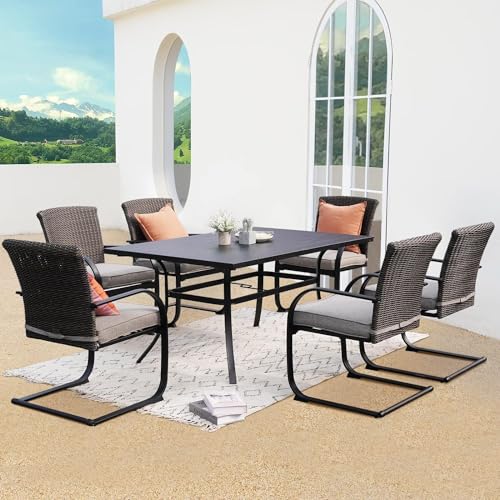 DINING TABLE SET OF 7: Comes with a rectangular embossed dining table and 6 dining spring chairs, each chair can hold up to 330lbs for a party of 6. Wide range of uses, patio, garden, deck.