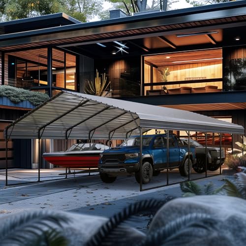 GREEN PARTY 20 x 30 ft Metal Carport Kits with Galvanized Steel Roof, Heavy Duty Metal Carport Canopy, Outdoor Car Tent Metal Garage Shelter for Car, SUV, Truck and Boats, Grey