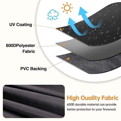 ?Sturdy and Weatherproof?: Our outdoor firewood rack cover is made from high-density, tear-resistant 600D Oxford fabric that is fade-resistant and built to last. The PVC coating on the inner layer ensures 100% waterproof protection, keeping your firewood rack safe from rain, snow, and sun damage, extending its lifespan.