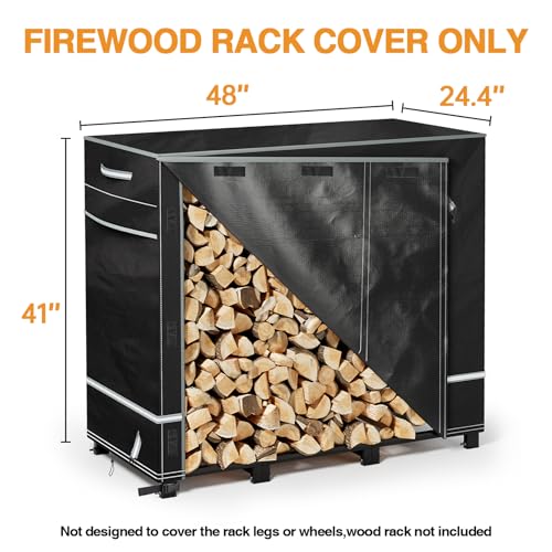 ?Universal Standard Size?: With dimensions of 48‘’ L x 24‘’ W x 42‘’ H,, our wood rack cover is designed to fit standard 4foot firewood racks. Please measure your firewood rack before purchasing to ensure a proper fit. ?Multiple Windproof Features?: Equipped with adjustable nylon straps and