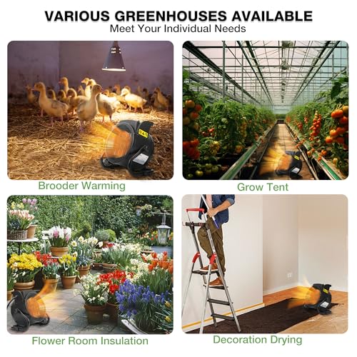 Auto Temperature Control Kit: This kit includes a reliable greenhouse heater and a precise digital thermostat, designed to automatically maintain the perfect temperature throughout winter. The independent thermostat constantly monitors the temperature and turns the heater on or off to meet your desired setting