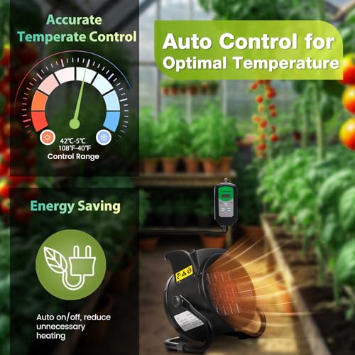 Energy Efficient: The automatic on/off control in the greenhouse heater for outside winter kit optimizes energy usage, helping you save on electricity costs while maintaining comfort