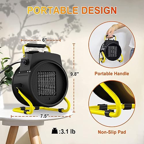 Safe Garage Heater: This garage heater ?120V, 60Hz?, current is 15Amps, with overheating protection function, when the heater will automatically shut down when the internal overheating, can prevent danger. Heater bracket with four non-slip pad at the bottom, can protect the bracket and increase friction