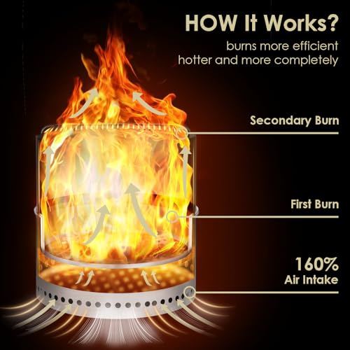 ?Smokeless Technology? GreenVines fire pit features dual chambers and a secondary combustion system. This innovative design draws in cool air and reignites smoke in the upper chamber with 360° airflow, eliminating smoke before it escapes. This technology ensures a virtually smoke-free fire, offering an impressive 50% increase in combustion efficiency compared to typical smokeless fire pits. Enjoy a cleaner and more efficient fire with GreenVines