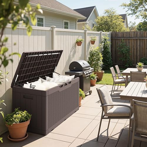EXTRA CUSHION:Besides helping you to organize your space, the deck box is equipped with a removable thick cushion, you can also use it as a stool to ensure your safety when opening and closing the box.
