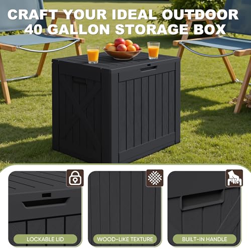 Spacious 40-Gallon Capacity: With a massive 40-gallon storage space, Greesum outdoor resin storage box is perfect for organizing garden tools, outdoor equipment ,etc.Ideal for both household and commercial use.