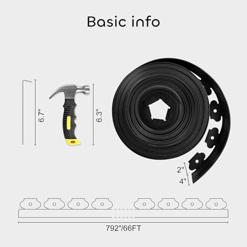 ?What You Get?Landscape edging comes with a 6.3" hammer and 30 metal garden staples. You can use them to clearly separate weeds from flower beds.