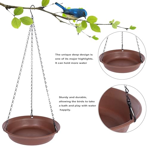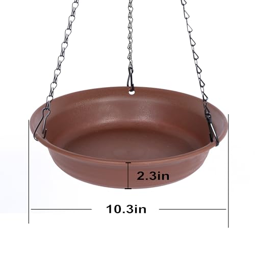 Bird Bath Tray Size: This hanging bird bath for outside is a great addition to your balcony, window, backyard, or garden decorations. The bird bath tray measures 10.3" in width and 2.3" in depth, with a 16-inch chain. It's perfect for outdoor birdbaths