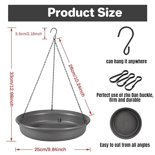 Design of Bird Bath Tray: Stainless steel hanging chain surface is polished, de-oiled and electro-winged black with rust prevention. Wide and shallow bowl,large enough to hold multiple birds at the same time, ensuring that multiple birds can drink and bathe safely at the same time. Easy to fill with feed and water, and bird droppings hanging outside the metal can be removed and cleaned at any time.