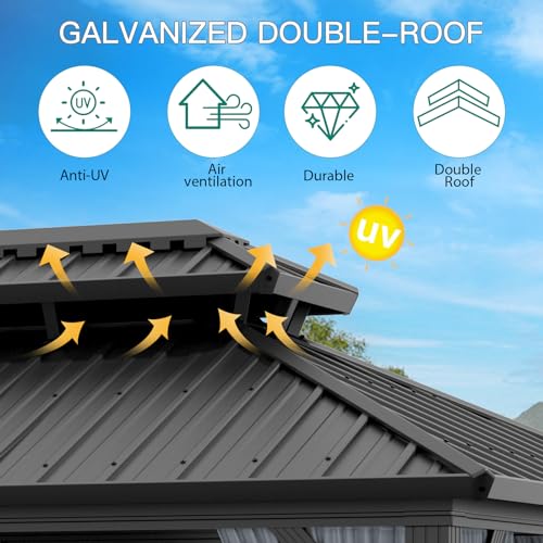 HARDTOP GAZEBO CEOLING WITH MULTI-FUNCTIONAL HOOKS - The metal hardtop gazebo includes ceiling hooks that are perfect for hanging decorations, fans, lights and heaters