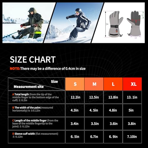 Heating Technology: These heated gloves are equipped with a powerful 7.4V 3200mAh lithium-polymer battery that provides heat up to 113-158°F (49-73°C). They keep men and women warm during cold-weather activities like skiing.