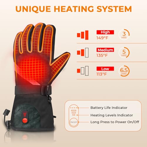 ?3-Temp Smart Control & Clear Power Display?One-button control for Low (120°F), Medium (135°F), and High (148°F) settings. 4-level LED battery indicator shows remaining runtime. Thumb and index fingertips are touchscreen compatible.