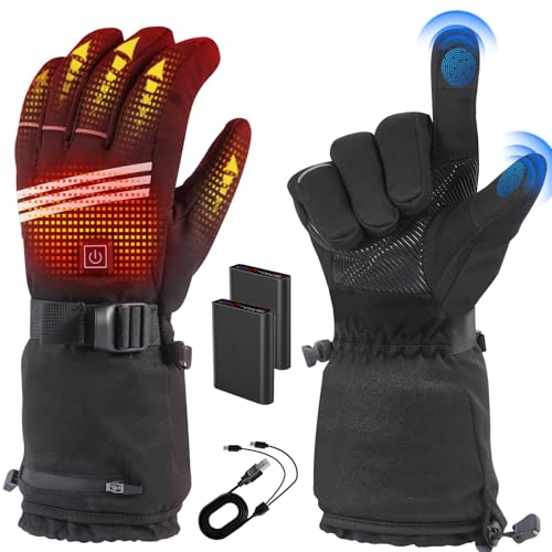 ?Touch Screen & Thoughtful Design?The electric heated gloves have a screen touch function with conductive leather coated index fingers and thumbs, which allows you to use touch screen devices such as tablets, cell phones and LCD car screens without removing the heated gloves. Adjustable wrist loops and elastic straps increase flexibility and effectively preventing wind or snow from entering the interior of the wrist. White reflective strips provide better safety for your outdoor tasks at night.