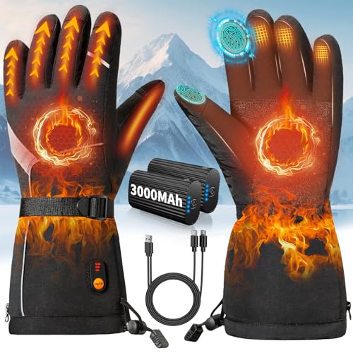 ?Long Lasting Heating Time and large Heating Area?: The rechargeable heating gloves are equipped with a pair of 7.4V 2*3000mAh(6000mAh) rechargeable batteries, which can provide about 2.5-7 hours of long time heating. The heating area not only includes the fingers, but also extends to the back of the hand. The heated gloves will keep your hands warm all winter long.