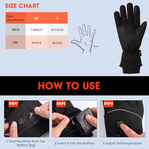 ?Breathable Waterproof Material?This thermal gloves are made of breathable water resistant fabric, which can effectively take against wind and rain in cold weather( in order to protect the built-in heating elements, it isn’t recommended to wear it in heavy rain). The palm anti-skid design increase the grip force while holding.