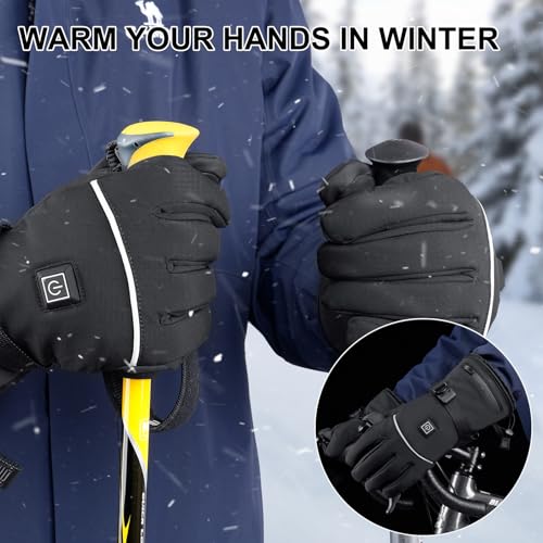 ?Warm, Waterproof, Windproof?: Our heated gloves are made of 100% polyester fabric, combined with thickened warm cashmere lining, and TPU waterproof bags inside the gloves, which are not only effectively waterproof, but also keep the gloves warm. You can try using heated gloves in rainy and snowy weather. The extended elbows and one-hand elastic band design of the gloves prevent snow and water from entering, enhancing the ability to prevent cold. Keep your hands warm and dry in the cold winter.