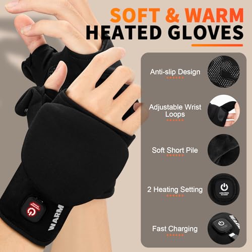 Flip-Top Flexible Design: Innovative full-finger and half-finger switchable design! Each finger features flip-top closure. Simply fold back to expose fingertips for precise, flexible tasks. Cover all fingers for warmth when needed, balancing comfort and convenience. No more frequent glove removal, these heated fingerless gloves effortlessly handle daily office typing, outdoor phone use, or detailed work.