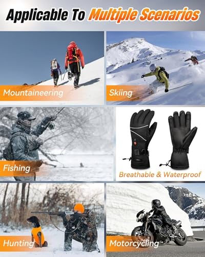 Wide Application & Perfect Gifts: These heated gloves rechargeable are perfect for mountaineering, skiing, hiking, hunting, snowboarding, cycling, ice fishing, and more. This heated motorcycle gloves is the best gift for Christmas, Father's Day, Mother's Day, Valentine's Day, Thanksgiving, Halloween, Teacher's Day, protect your hands in the cold winter.