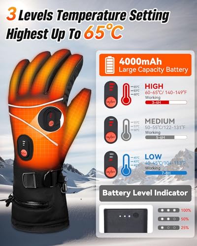 3 Heating Levels: The heated gloves rechargeable featuring three temperature modes - high heat, medium heat, and low heat - you can adjust the internal temperature to suit your comfort. The hand warming gloves for women heating elements cover the entire back of the hand and fingers, promoting hand blood circulation. Perfect for those with cold hands, arthritis, or poor circulation, these gloves with heating will keep your hands warm and comfortable.