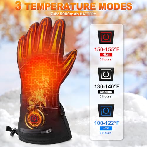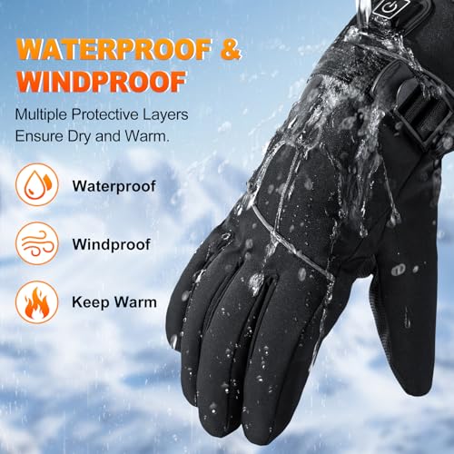 Waterproof & Windproof: Our men's and women's heated gloves are made from PU leather and polyester fiber, including a waterproof and windproof layer, a heating layer, and an insulation layer. The winter gloves design ensures comfort while allowing flexibility and grip. These winter heated gloves offer excellent wind and moisture protection, keeping your hands dry and warm in harsh winter conditions, perfect for outdoor activities such as skiing, motorcycling, racing, fishing, and hiking.