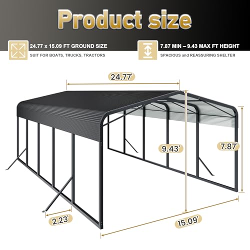 Exceptional Versatility & Spacious Coverage - The generous 15x25FT area delivers robust coverage not only for cars and pickup trucks but also for boats, tractors, and other large equipment, while its sturdy construction and stylish appearance make it ideal as a temporary shelter for outdoor events like backyard parties, weddings, or trade shows