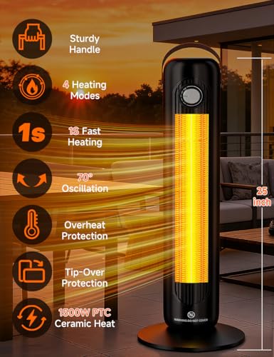 ????? 1S Fast Heat with PTC Technology? HETRAROOT electric patio heaters for outdoor use boasts a powerful 1500W output, delivering rapid heating at up to 20 ft/s. It boasts a 92.5% increase in heating efficiency, heating in just one second. Its PTC ceramic heating element quickly heats up to a stable temperature, providing continuous warmth without overheating. Built for durability and low maintenance, it’s ideal for large rooms and year-round comfort—safe, reliable, and ready when you are.