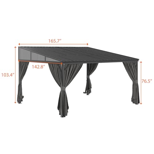 [Spacious & Comfortable] - Overall dimensions: 165.7"L x 142.8"W x 103.4"H. This 12x14 gazebo is great for outdoor parties or daily relaxation with your family and friends. It provides extra shade space for your patio, garden. You can place an outdoor table and chairs in it to create your own outdoor area