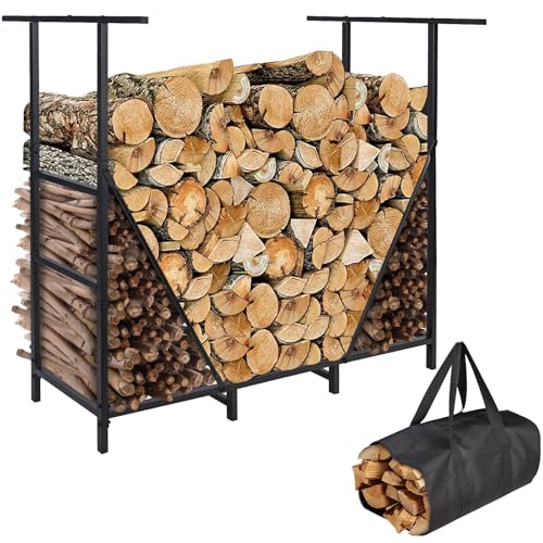 Heavy Duty & Weather-Resistant: Made from high-quality 1mm thick steel tubing, this firewood rack supports up to 1000 lbs. Its double-layer black powder coating ensures durability, rust resistance, and weatherproofing, making it ideal for all climates and year-round firewood storage.