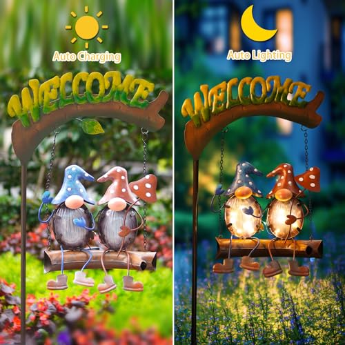 ?Gnomes Garden Decor?Gnomes garden lights can be used as both a welcome sign and a pathway light. The design of the swing can make the gnome partner swing with the wind to decorate your garden, which is a whimsical decor