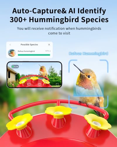 ?AI Recognition Hummingbird Species & Instant Notifications?Using advanced AI algorithms, it can identify 300+ hummingbird species through Wikipedia integration. AI bird recognition requires a paid subscription function in VicoHome to use ($4.49/month include Cloud Storage). When bird visitors arrive, the smart camera can automatically capture and record the video of the hummingbirds flying to eat, and the mobile phone will notify you instantly so you can view it at any time.