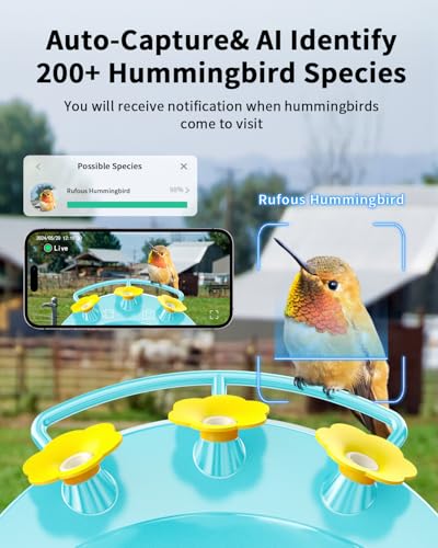 ?Watch Hummingbirds Anytime, Anywhere? When bird visitors arrive, the smart camera can automatically capture and record the video of the hummingbirds flying to eat, and the mobile phone will notify you instantly so you can view it at any time.AI bird recognition requires a paid subscription function in VicoHome to use ($4.49/month include Cloud Storage).