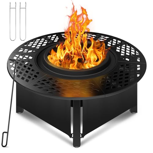 ?DURABLE & HEAT-RESISTANT MATERIALS? Constructed from high-quality steel with a durable heat-resistant finish, this fire pit is built to withstand the intense heat of wood fires season after season. Its robust design ensures stability and longevity, making it a permanent and reliable fixture in your outdoor space.