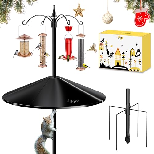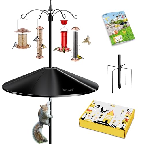 This listing includes only the bird feeder pole with baffle setup: 1 sturdy bird feeder pole+1 anti squirrel baffle+4 hanging hooks+5-prong ground stabilizer.The bird feeders shown in product images are for demonstration purposes only and are not included with your purchase.DO NOT include any bird feeders