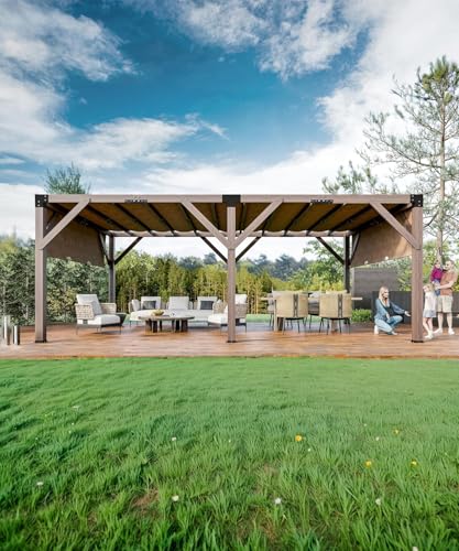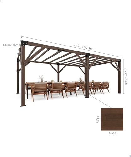 ?Spacious Design for Various Uses?: With dimensions of 144 inches long, 240 inches wide, and 85.8 inches high, this outdoor pergola provides ample space for entertaining, dining, or simply enjoying the outdoors. Weighing 522 pounds, it offers a sturdy and spacious area for gatherings with family and friends, enhancing your outdoor experience.