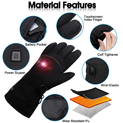 Waterproof Touchscreen Designed: Electric men heated gloves have four layers: waterproof coating fabric, extra heavy cotton, invisibility heat chip, reinforced PU leather ( in palm). Electric gloves adopt a new touch screen design, with touch sensors on the forefinger and thumb, Ultra-thin glove liners allow your hands to move freely. You can use your phone tablets and car touch screens without taking off heating gloves.
